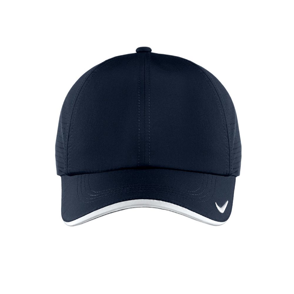 Dri-FIT moisture management technology and perforated mid and back panels achieve maximum breathability. A contrast underbill reduces sun glare. This six-panel cap has an unstructured, low-profile design with a hook and loop closure. The contrast Swoosh design trademark is embroidered on the bill and center back. Made of 100% Dri-FIT polyester. Your logo embroidered on the front.