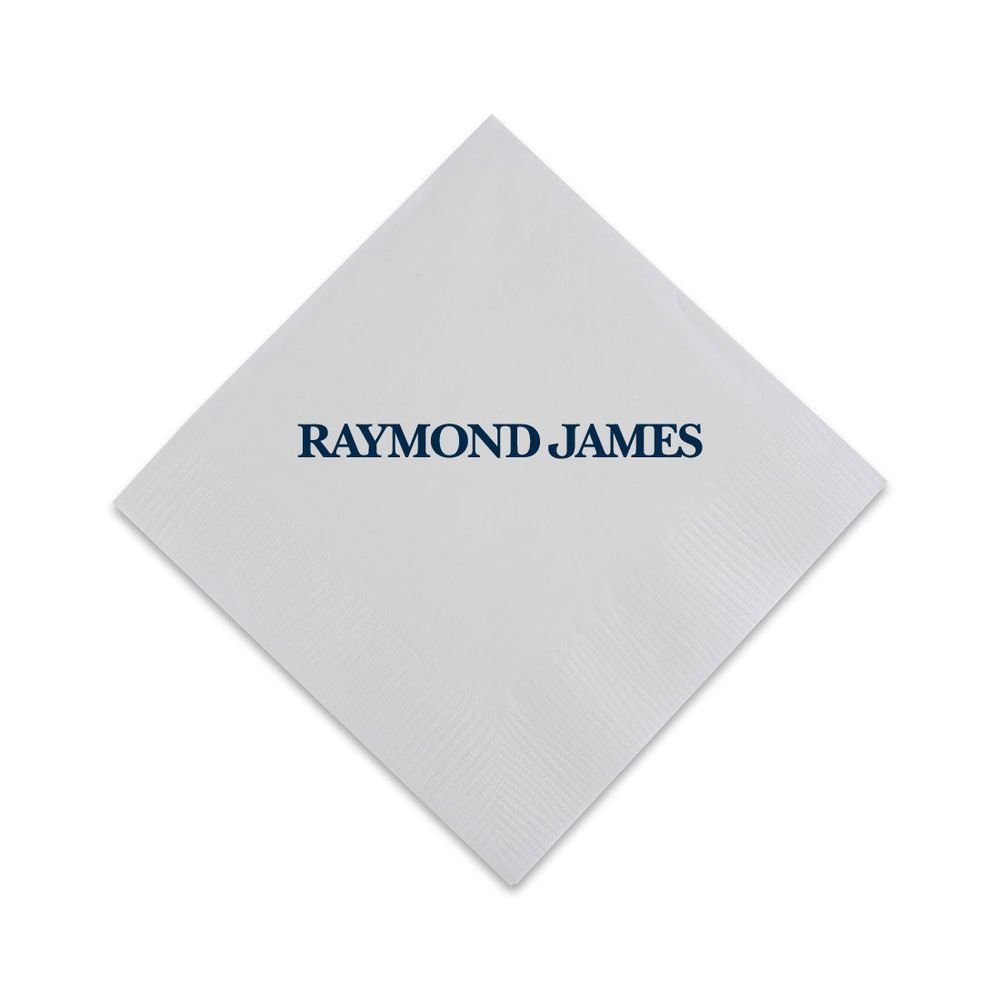 These white napkins are the highest quality 3 ply. Pack of 50. Features your printed logo. Made in the USA. Dimensions: 5" L x 5" W