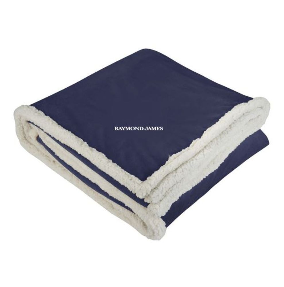The Sherpa Blanket has a classic look with timeless style. Combines soft velour and Sherpa backing with vintage detail for a perfect luxurious comfort. Features your logo. Unfolded: 50” x 60”