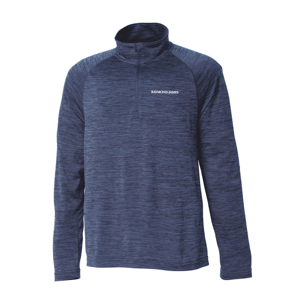 Made from TopShield technology with moisture wicking and anti-microbial fabric properties. Ultraviolet protection factor of 20+ (blocking up to 95% of UV radiation). Raglan sleeve styling for increased range of motion. Double needle coverstitch on raglan seams for added durability. Quarter zip pullover with wind flap to help prevent chafing and for added comfort. Heat-sealed back neck label for comfort. 100% polyester yarn dyed jersey knit with a unique space dye effect. Features your logo on the chest.