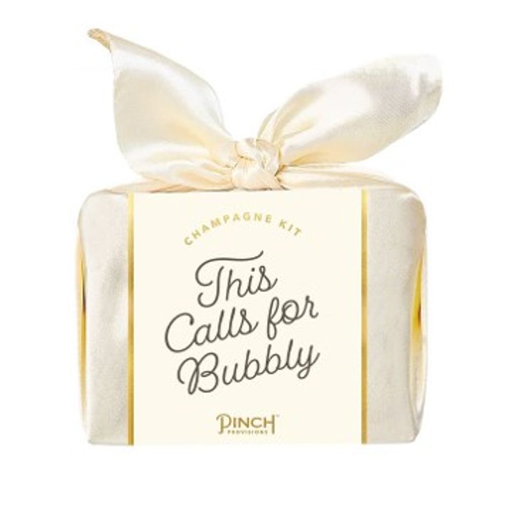 It's always time to celebrate with a luxe Champagne Kit by Pinch Provisions! This delightful assortment of accessories & essentials is ready to gift in a Furoshiki-style bow box. You'll be raising a glass to these 11 must-haves, including 2 mini stemless champagne glasses, a bottle stopper, confetti, coasters (2), swizzle sticks (2), edible gold glitter, a champagne cocktail recipe booklet, and a "ring for champagne" bell.