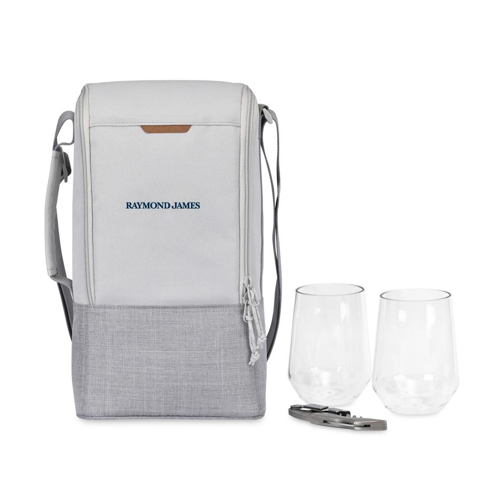 The Wine Down Cooler features an eco-conscious Canvas Drawstring Gift Bag, which is tucked inside the sleek cooler. The set includes two Tritan Wine Tumblers and a Corkscrew – all you need to create a sophisticated and memorable wine-tasting experience (wine not included). Features your logo on the cooler bag.