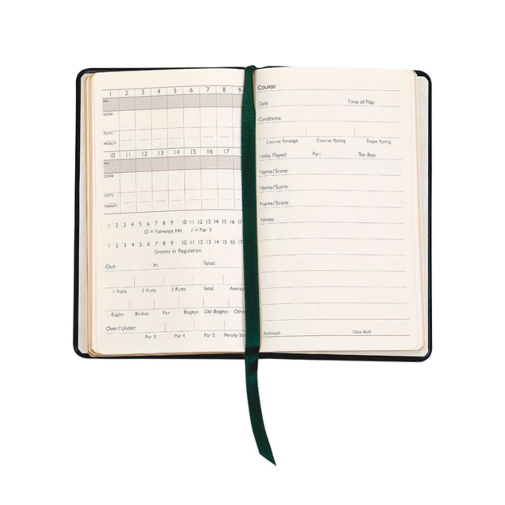 The essential record for golfers of all skill levels. This compact score book records up to 56 rounds and notes on your play. Fits neatly in pocket or golf bag. An ideal gift for any golfer. Size: 3" x 5“. Full grain leather. Smyth-sewn for strength and longevity. Cream-white, acid-free paper with gilt edges.