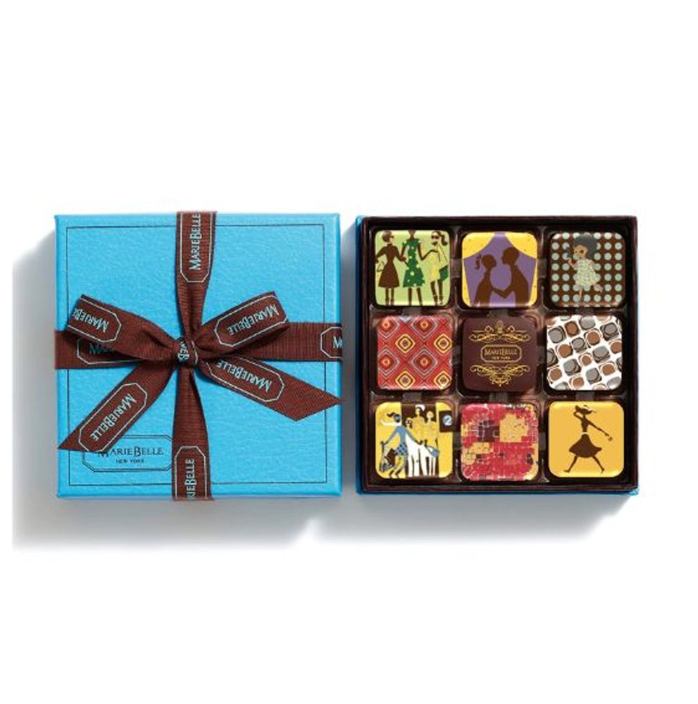 Treat yourself to a chocolate lover’s fantasy with MarieBelle New York’s collection of handcrafted chocolate ganache; perfect for gifting, this signature box features nine rich and velvety pieces of our world-renowned chocolate ganache. Infused with the finest ingredients and crafted with culinary expertise, these artisanal treats boast flavors such as passion fruit, vanilla, espresso, and milk chocolate. Each piece is artfully packaged in a signature blue MarieBelle New York box, making them a treasured gift or decadent treat to savor on your own. Whether you treat yourself or someone special, this enticing assortment will surely satisfy your chocolate cravings.